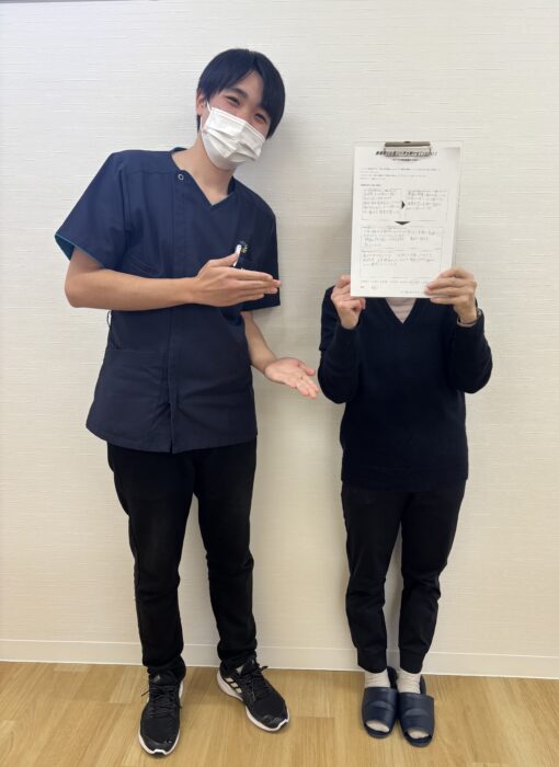 また、毎回行う姿勢チェックで、自分の姿勢が少しずつ改善されていることが実感できるので嬉しいです。通ってよかったです。いつもありがとうございます。