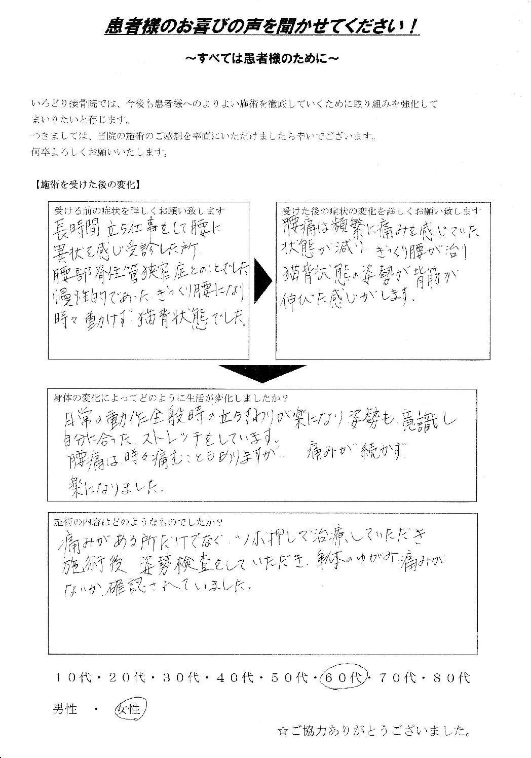 S.M様 60代 女性 腰痛 脊柱管狭窄症