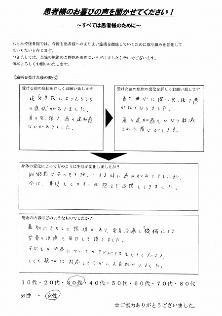 Y.S様 40代 二本松市 交通事故施術・腰痛