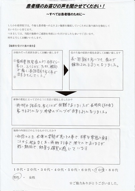 T.S様 70代 男性 脊柱管狭窄症