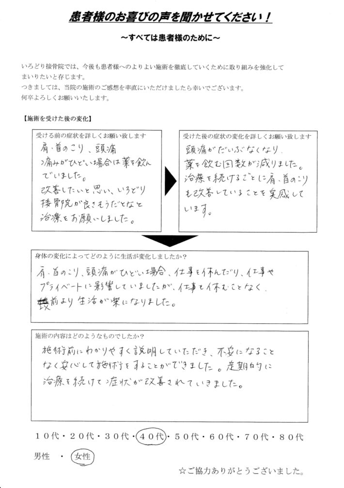 H.S様 40代 肩こり 頭痛